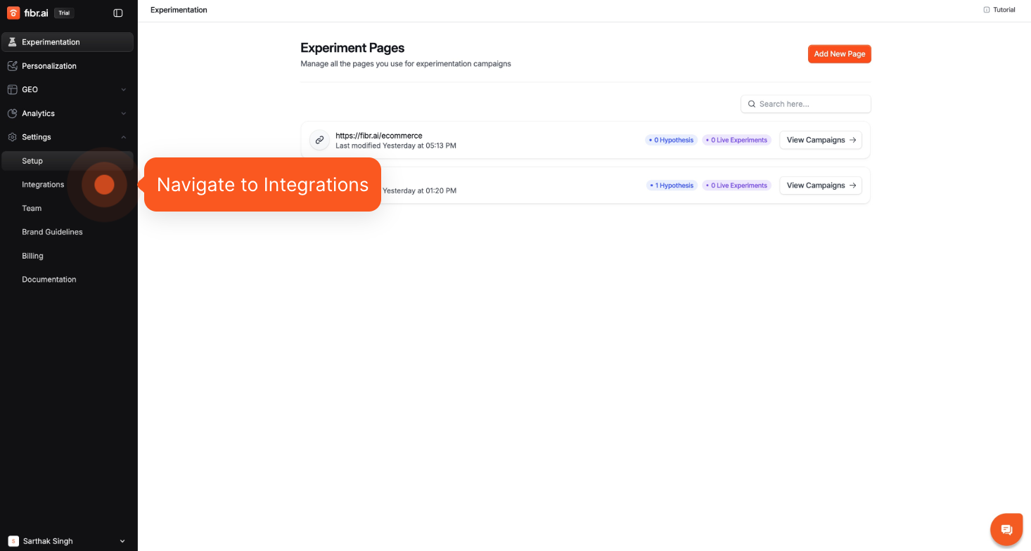 **Step 2:** Navigate to **Integrations.**
