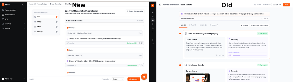 We’ve redesigned the **Element Selection** experience within the Ad Personalization flow to make it more intuitive and focused.